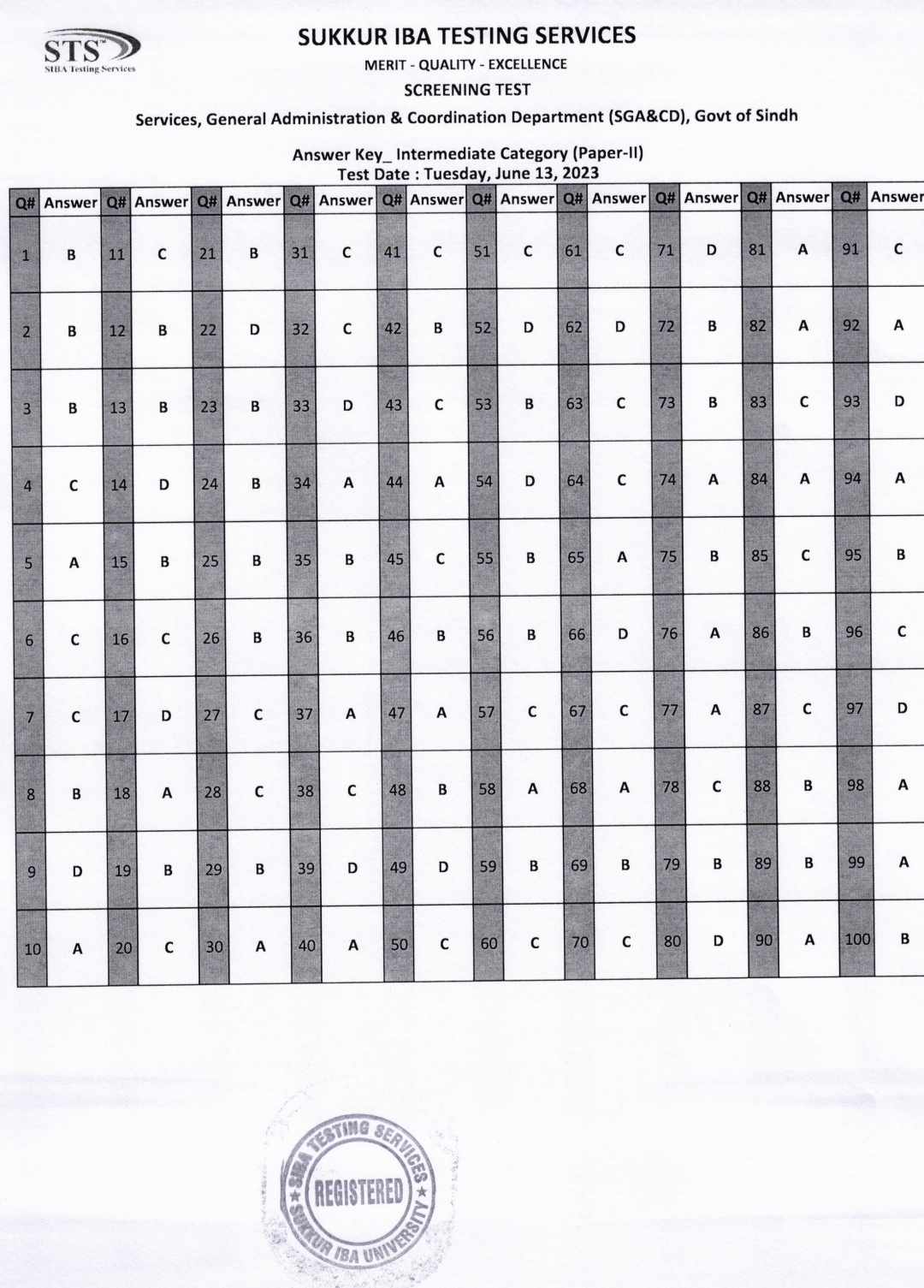 Official Key - IBA BPS05-15| Intermediate category| Past papers 2023 Day (2) 13/06/2023